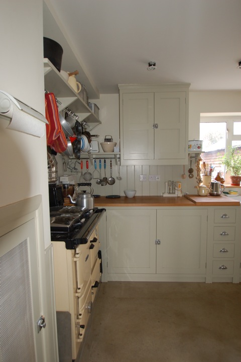 Our customer had a wonderful collection of kitchen accessories. The area above the Wood Burning Rayburn was the obvious location for a Shelf and Pot Rail, all within arms reach.